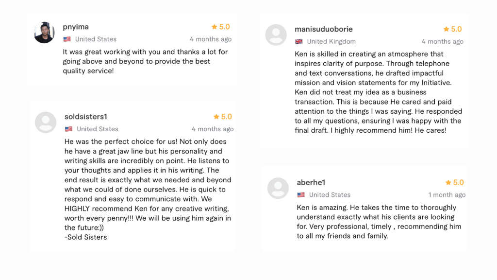 If you’re looking for a professional copywriter and brand strategist to help you craft the perfect bio/about me, brand narrative, mission & vision statement, website content, value proposition, or virtually any kind of writing for your business, brand, or vision…Read some reviews, click that button ⬇️, and let’s: